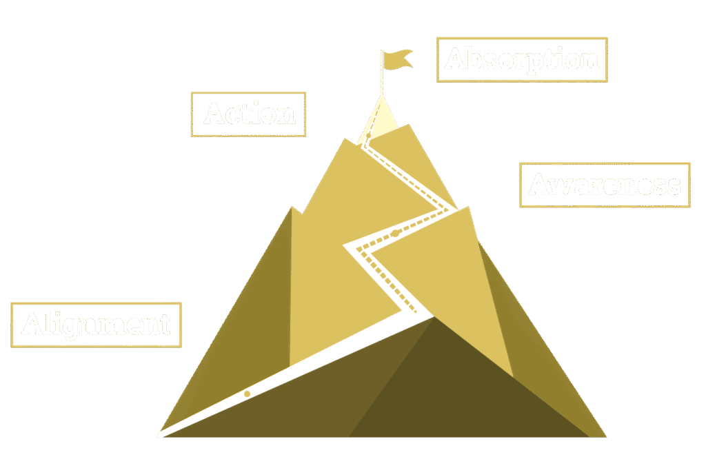 At its core, the Transformative Servant Model™ is structured around four interconnected layers: Alignment, Awareness, Action and Absorption.
